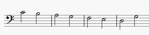 上の例では半音ずつ動いていますが、1音ずつ下がるのもよくあります。